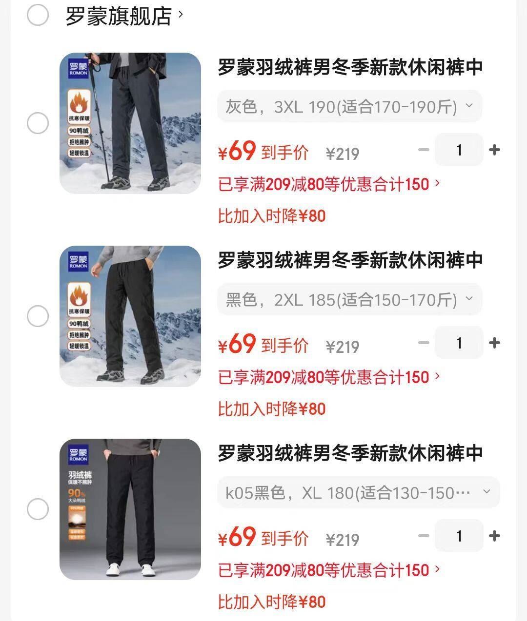 罗蒙 90%鸭绒防寒保暖休闲裤
