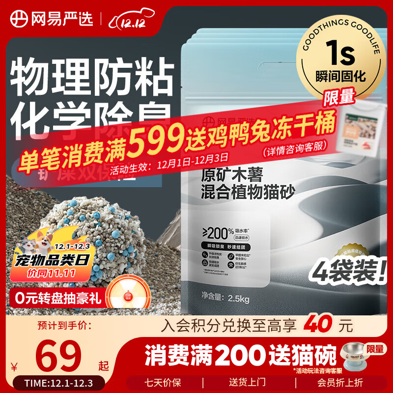 网易严选木薯矿石猫砂2.5kg*4包