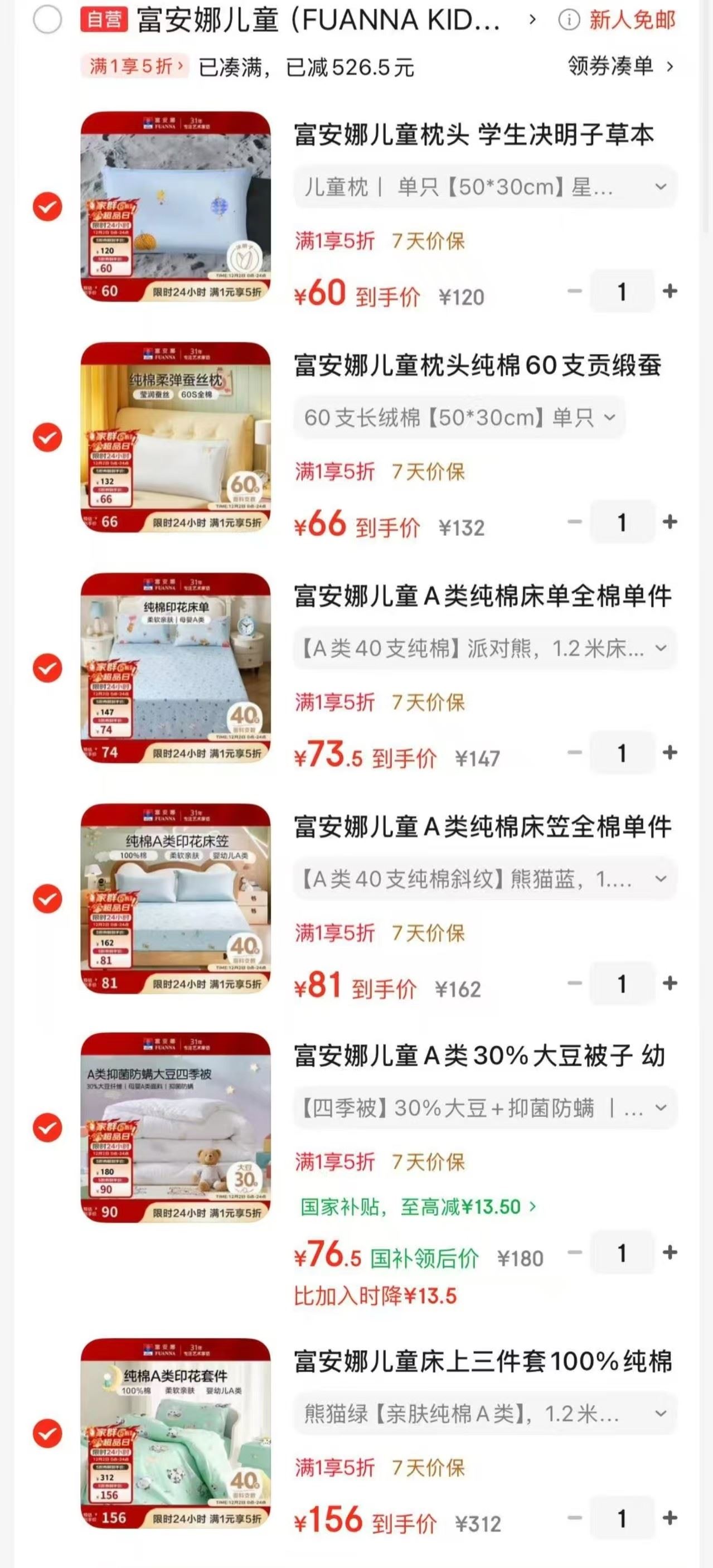 富安娜 儿童床上三件套100%纯棉婴幼儿A类 1.2米【156】