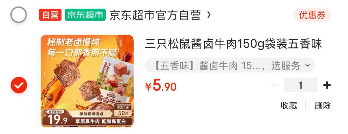 浙江地区 三只松鼠酱卤牛肉150g袋装【5.9】