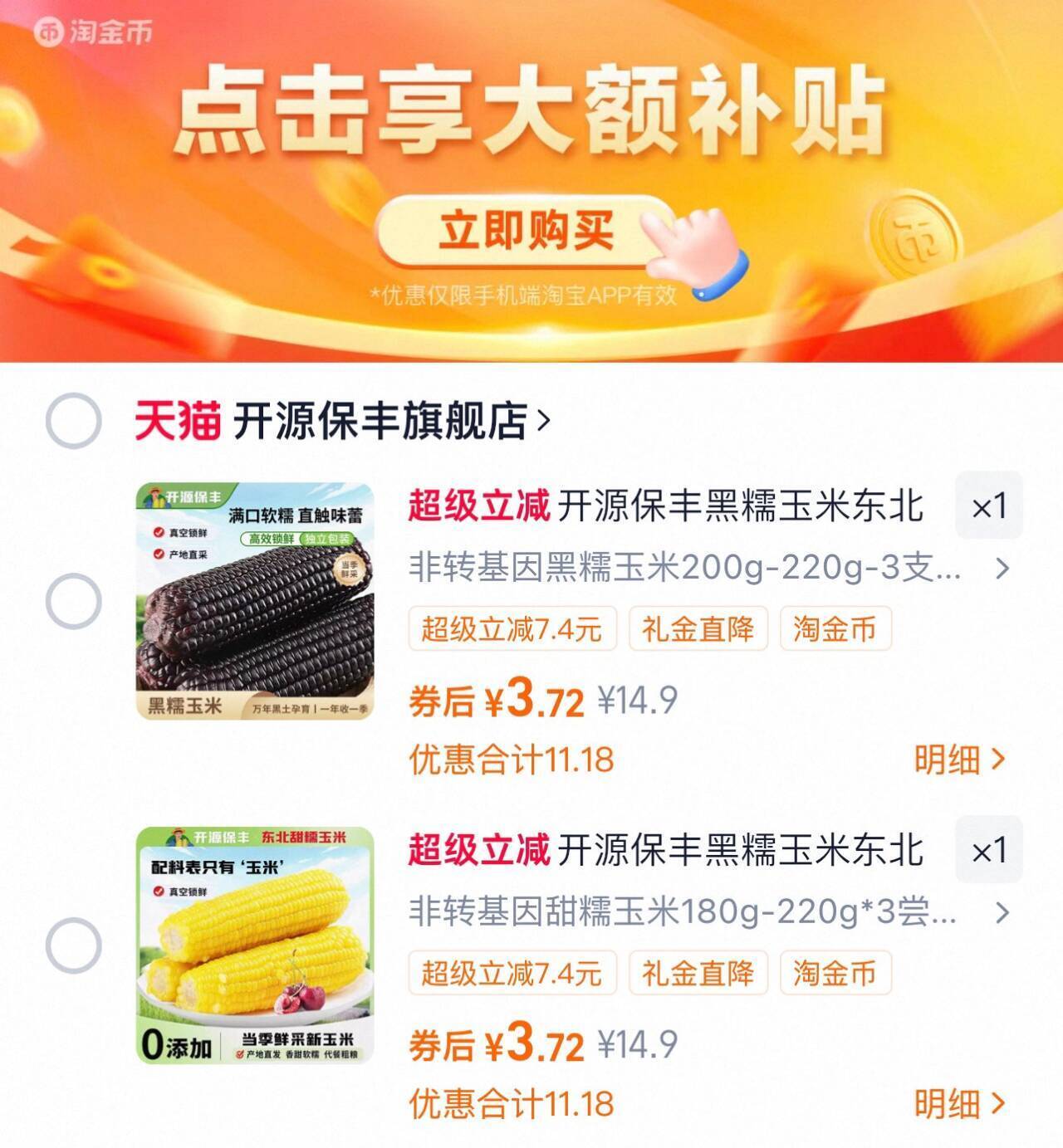 下拉详情拍下3.7亓元 开源保丰 黑糯玉米3只 好单发报员 2025年12月02日 23:08 0 举报 下拉详情拍下3.7亓元开源保丰 黑糯玉米3只https://m.tb.cn/h.7aU9Ddv 复制文案