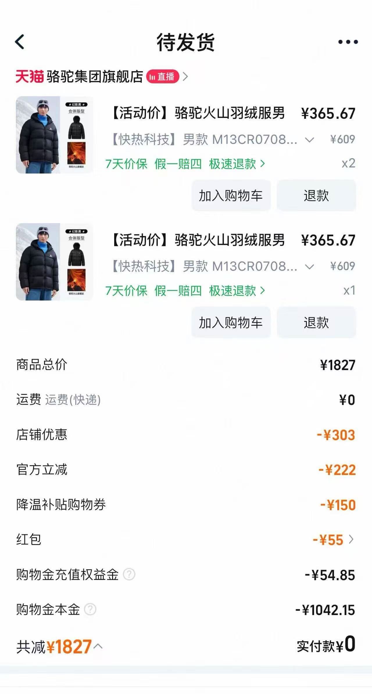 骆驼服饰集团店铺根据自己的服饰券拍1-8件