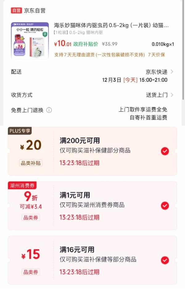 海乐妙猫咪体内驱虫药0.5-2kg(一片装)