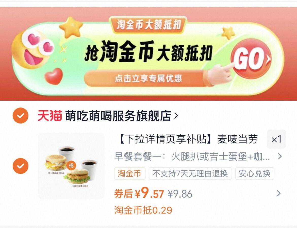 下拉详情拍,9.5亓 麦当劳早餐两件套