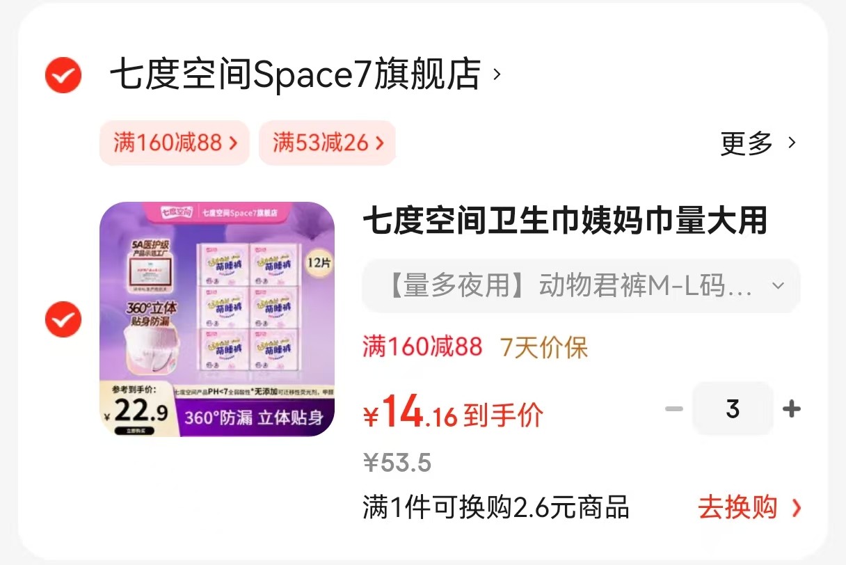 七度空间 动物君 安睡裤M-L码12片,拍3件【42.5】