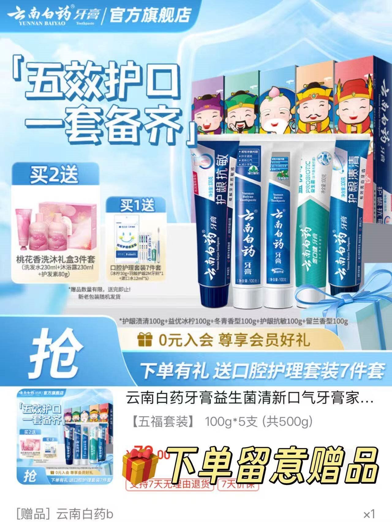 云南白药牙膏車 云南白药 五福牙膏5支共500g 59亓,下単再贈洗漱3件套好单发报员2025年12月03日 21:100举报 ——云南白药牙膏車——云南白药 五福牙膏5支共500ghttps://u.jd.com/WghETOV59亓,下単再贈洗漱3件套*超.市老贵了 大牌好用 刚.需囤复制文案