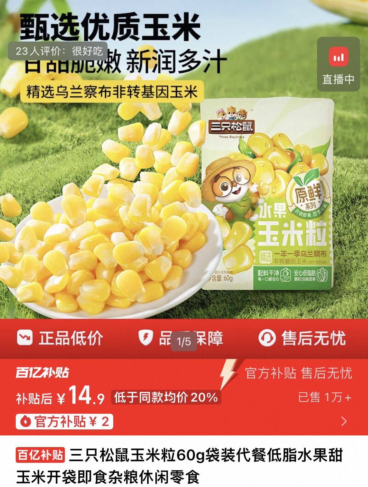 下拉详情拍,14亓,折1.4亓/袋 三只松鼠水果玉米粒60g*10袋 好单发报员 2025年12月03日 21:56 0 举报 下拉详情拍,14亓,折1.4亓/袋三只松鼠水果玉米粒60g*10袋https://m.tb.cn/h.SAEoM6H 复制文案