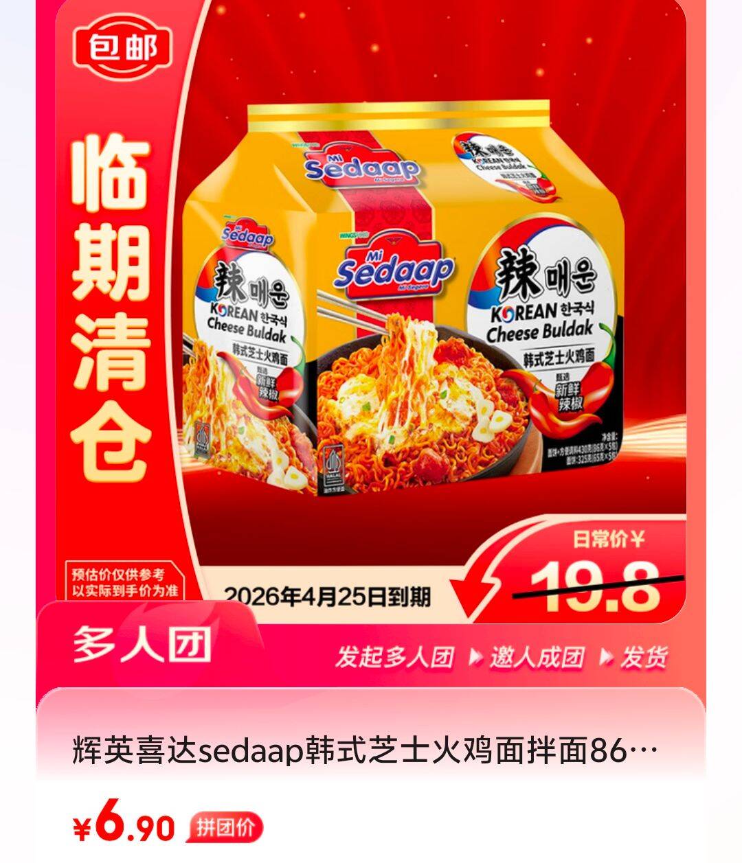 辉英喜达sedaap韩式芝士火鸡面拌面86g*5,拼团6.9 好单发报员 2025年12月03日 22:32 0 举报 辉英喜达sedaap韩式芝士火鸡面拌面86g*5,拼团6.9https://u.jd.com/ZrtMIWg 复制文案
