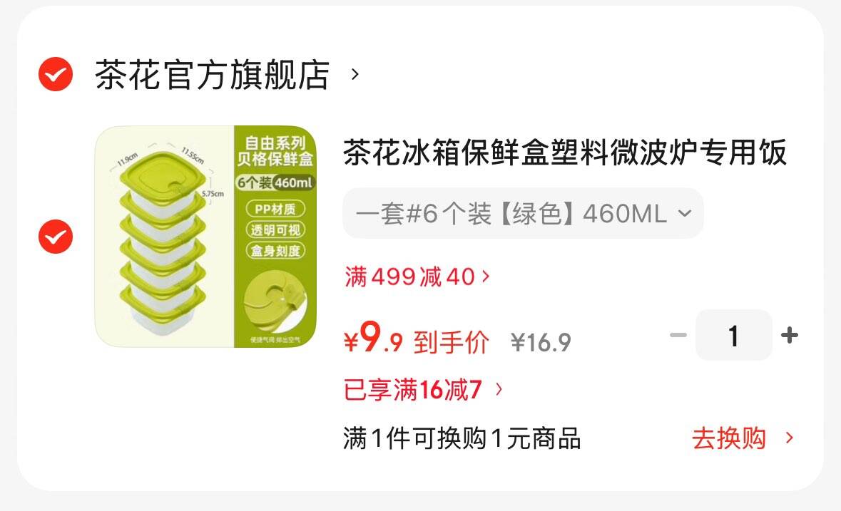 9.9亓 茶花冰箱保鲜盒6个
