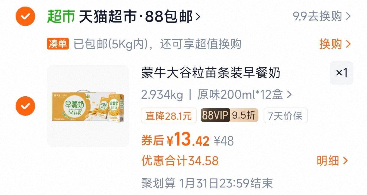 vip 13.4亓,速! 蒙牛大谷粒早餐奶200ml*12盒 好单发报员 2025年12月04日 11:21 0 举报 vip 13.4亓,速!蒙牛大谷粒早餐奶200ml*12盒https://m.tb.cn/h.7akBpLg 复制文案