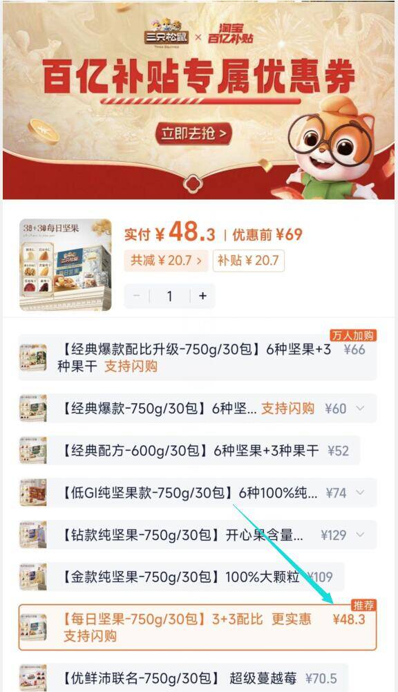 下拉详情拍 倒数第二个选项 48.3亓 三只松鼠每日坚果750g好单发报员2025年12月04日 11:320举报 下拉详情拍倒数第二个选项 48.3亓三只松鼠每日坚果750ghttps://m.tb.cn/h.SAuMNrc复制文案
