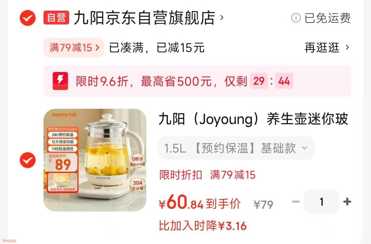 部分掉落立减,九阳(Joyoung)养生壶迷你玻璃花茶壶煮茶器 0胶水【60.8】