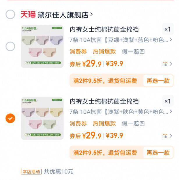 4.2亓/条拍最后2个选项 拍下29.9亓7条!当一次性都值 黛尔佳人 女士纯棉内裤7条