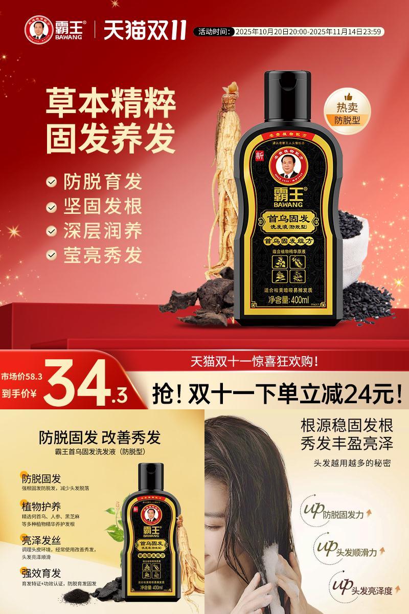 拍3件 39.9元 霸王官方旗舰店 霸王何首乌防脱发洗发水