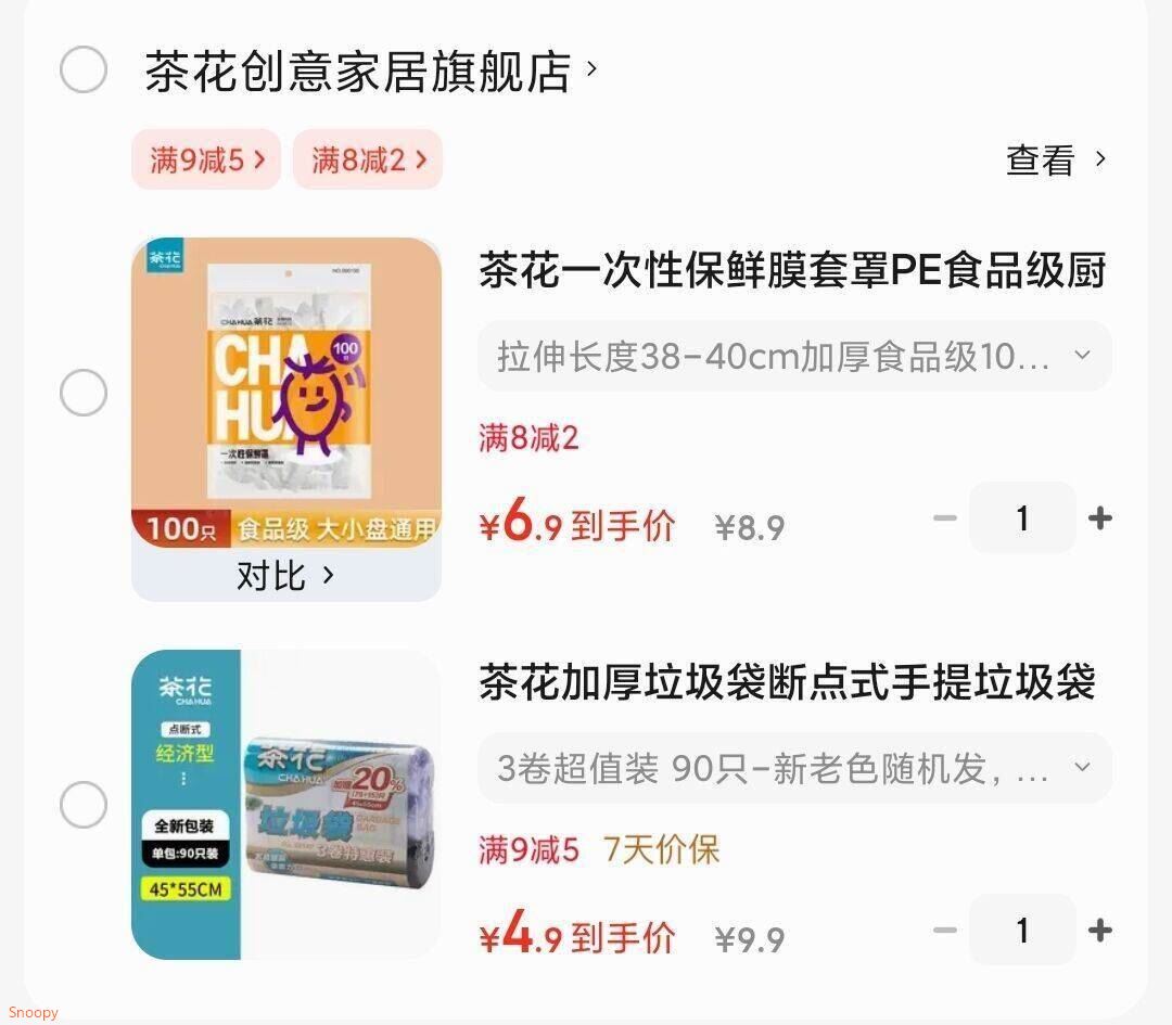 茶花 一次性保鲜膜套罩加厚PE食品级 100只