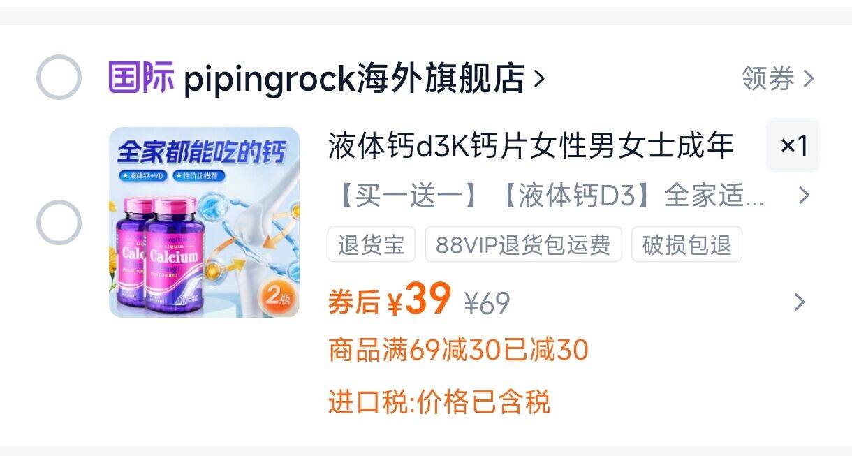 美国朴诺液体钙d3钙片 第一项,拍发瓶39元 好单发报员 2025年12月04日 17:04 0 举报 美国朴诺液体钙d3钙片第一项,拍发瓶39元https://m.tb.cn/h.7a8rCPj 复制文案