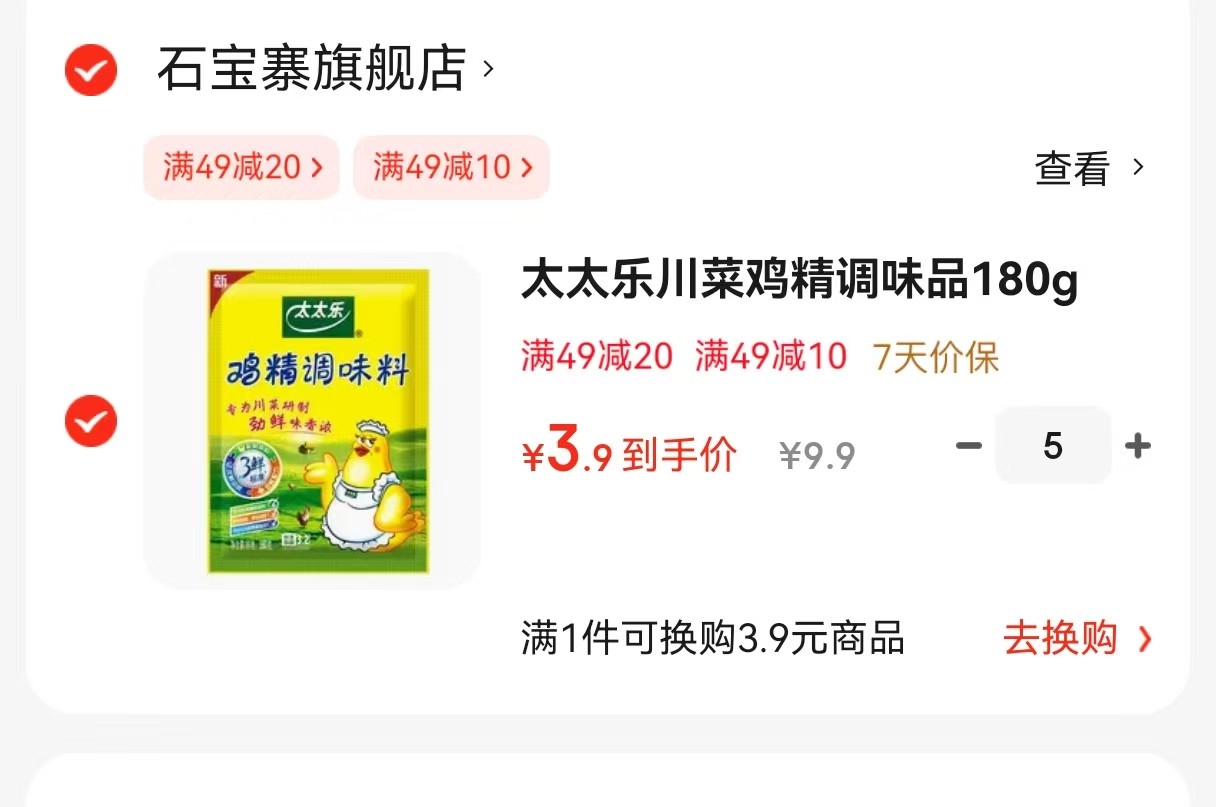 太太乐 川菜鸡精调味品180g,任选5件【19.5】