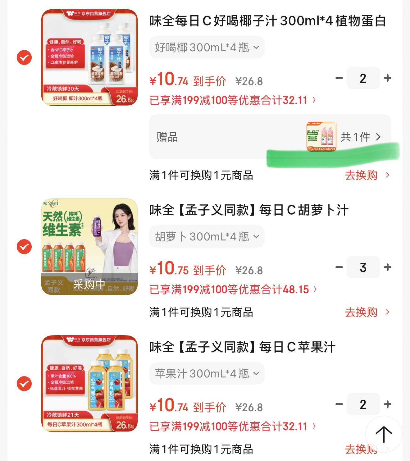 味全 每日C果汁300ml*4,搭配拍7件凑后每件【10.75】,赠味全芭乐青提汁900ml*2瓶