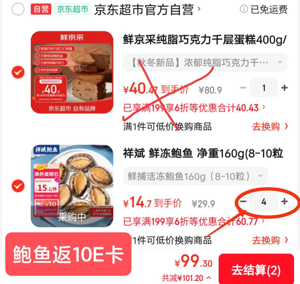 鲍鱼4件到手48.8元 约40个!(到货返10E卡)
