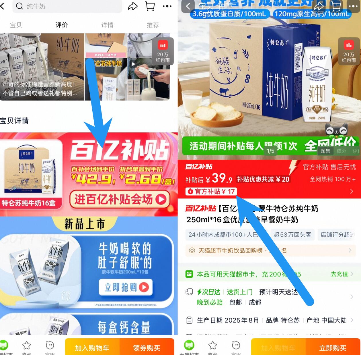 折2.4亓/盒叠3品牌金 到手39.9亓 下拉详情页拍 特仑苏 牛奶250ml*16盒 好单发报员 2025年12月05日 10:50 0 举报 折2.4亓/盒叠3品牌金到手39.9亓 下拉详情页拍【特仑苏】牛奶250ml*16盒https://m.tb.cn/h.7alOmpN 复制文案