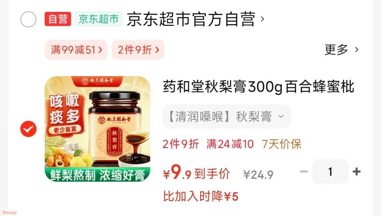 药和堂 秋梨膏300g百合蜂蜜枇杷黄精冲泡【9.9】