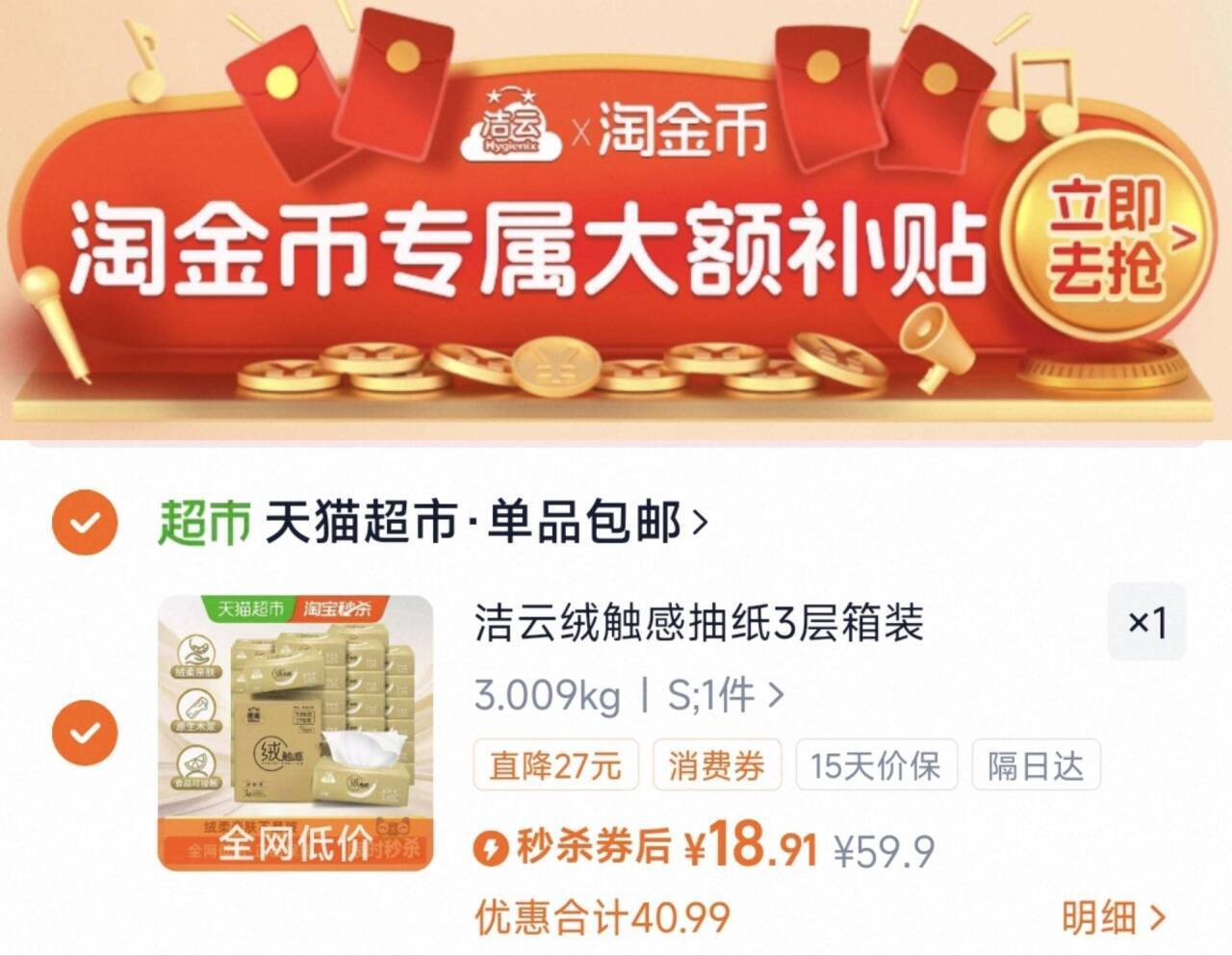 下拉详情拍,18.9亓 洁云抽纸90抽*27包
