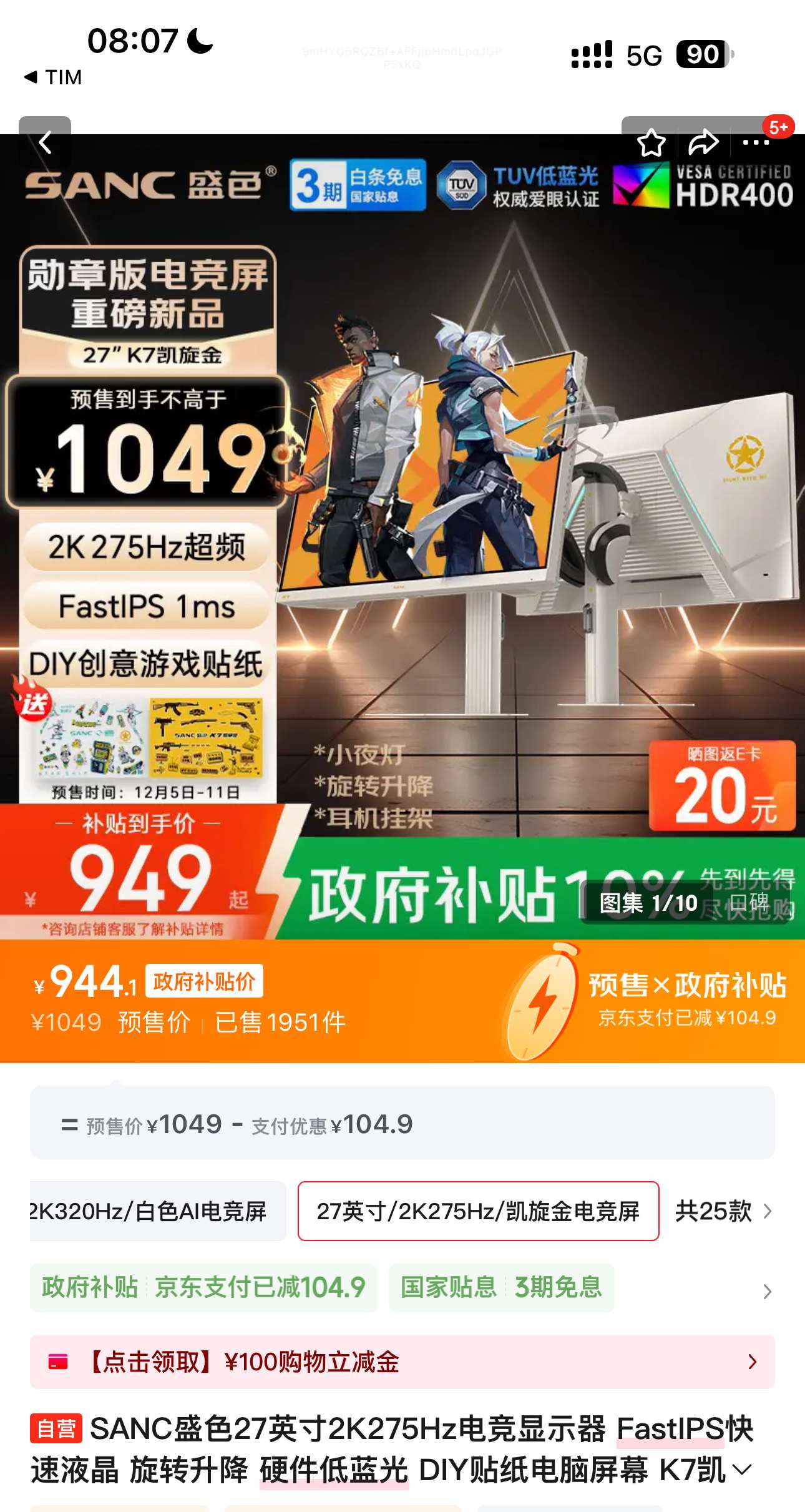 SANC 27英寸 2K275Hz FastIPS快速液晶 924 晒返20好单发报员2025年12月06日 09:110举报 SANC 27英寸 2K275Hz FastIPS快速液晶【924】晒返20https://u.jd.com/ZOipnXr复制文案