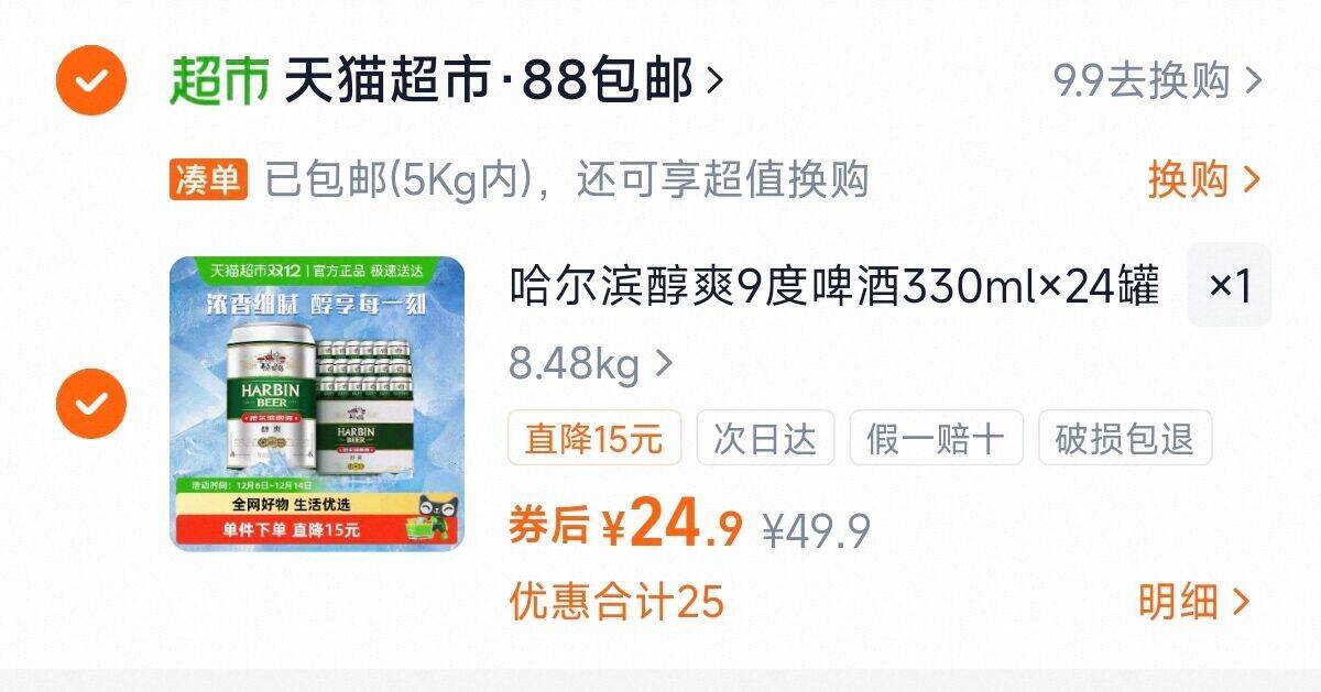 24.9亓 哈尔滨啤酒醇爽9度330ml*24听 好单发报员 2025年12月06日 12:18 0 举报 24.9亓哈尔滨啤酒醇爽9度330ml*24听https://m.tb.cn/h.70G1yOE 复制文案