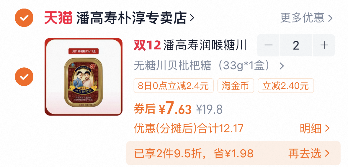 去淘金币 拍2件第一选项 7.6一盒 潘高寿川贝枇杷润喉糖 好单发报员 2025年12月06日 15:15 0 举报 去淘金币拍2件第一选项 7.6一盒潘高寿川贝枇杷润喉糖https://m.tb.cn/h.7ZhgDrl 复制文案