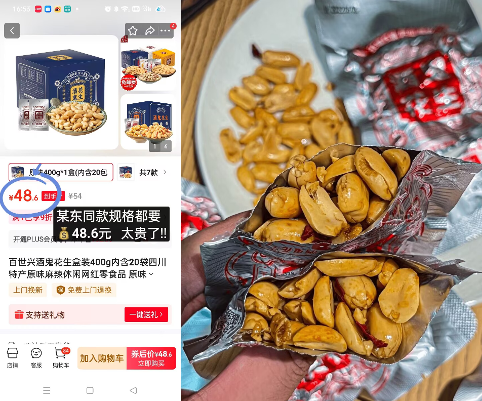 酒鬼花生.礼盒装合集400g 拍下19.9亓 某东同寛48.6亓!当零食、下酒菜、都非常赞 好单发报员 2025年12月07日 21:21 0 举报 酒鬼花生.礼盒装合集400g拍下19.9亓某东同寛48.6亓!当零食、下酒菜、都非常赞https://m.tb.cn/h.70DUGUi 复制文案