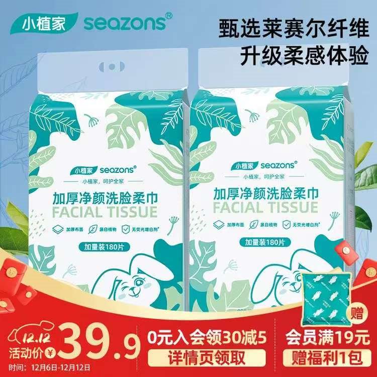 小植家 挂式洗脸巾180抽*2提
