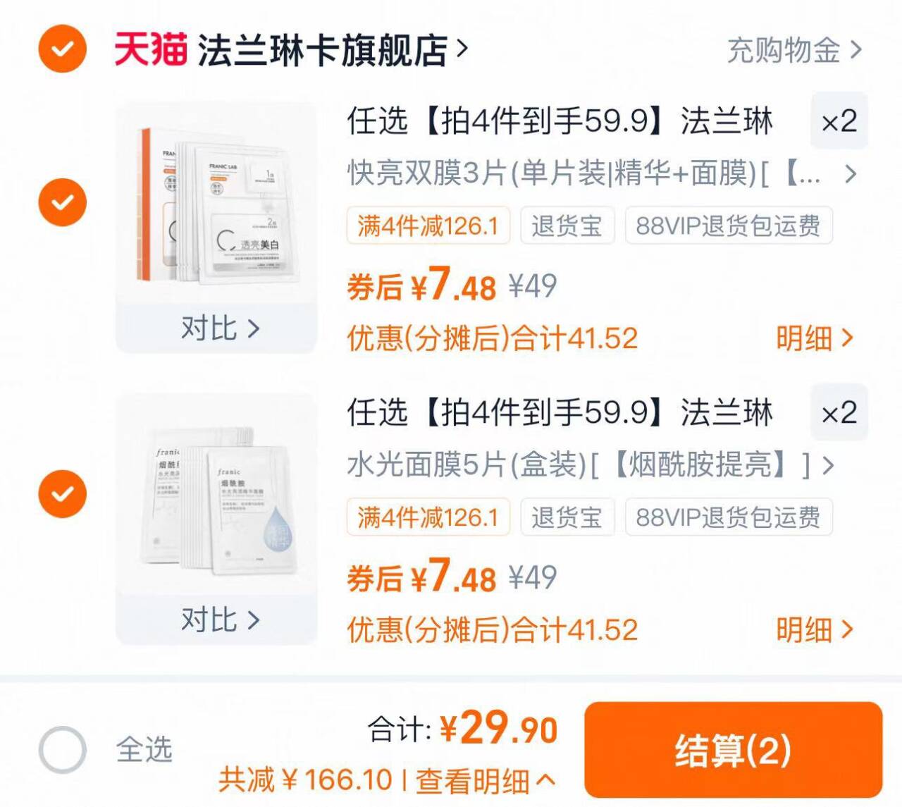 4件任选 到手29.9亓 折7.48/件 法兰琳卡旗舰店 法兰琳卡补水/水光/白膜面膜*4件好单发报员2025年12月08日 00:170举报 4件任选 到手29.9亓折7.48/件 法兰琳卡旗舰店法兰琳卡补水/水光/白膜面膜*4件https://m.tb.cn/h.705j1lp复制文案