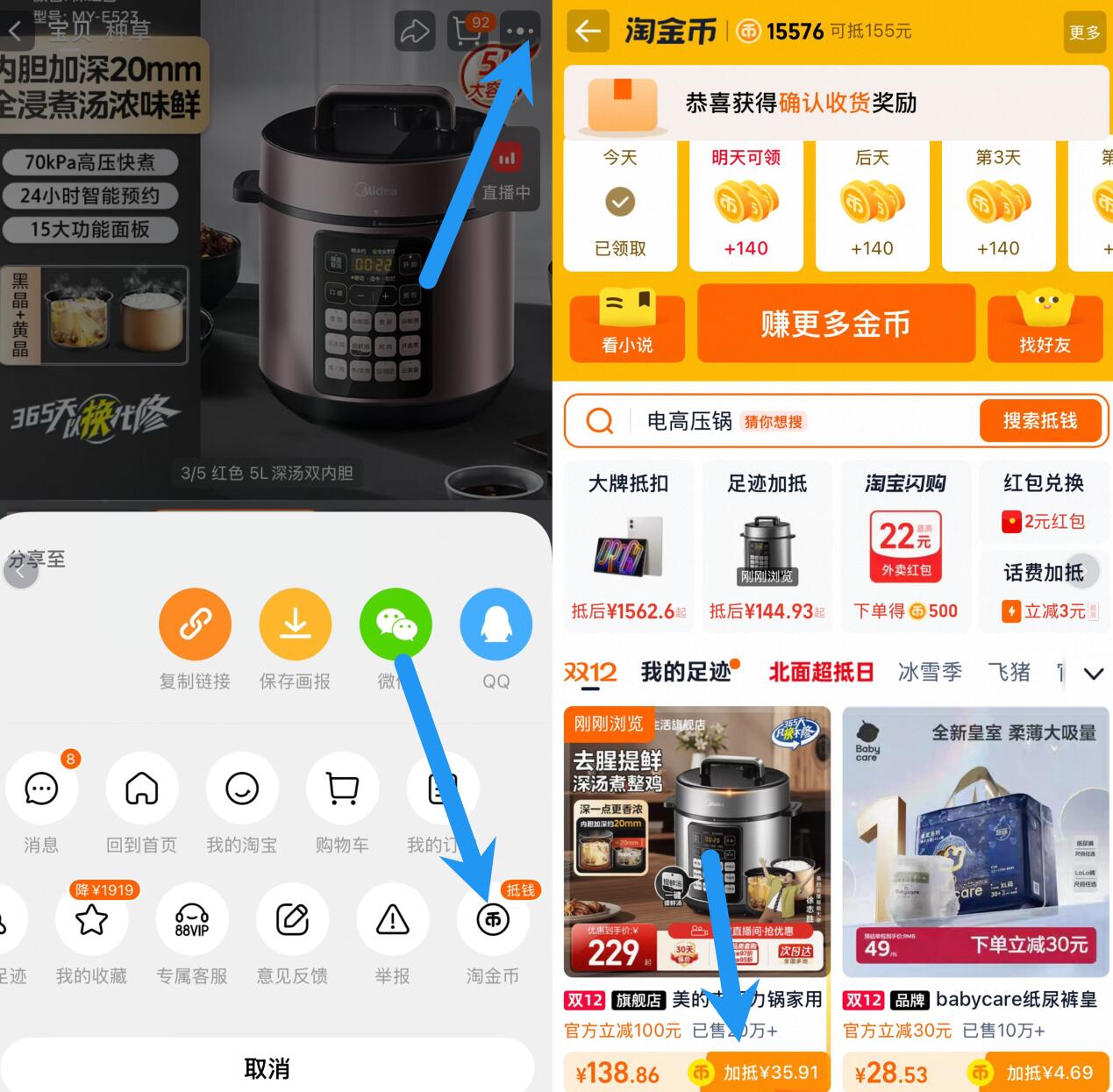 131亓 叠36金币 4首单 消费券 88vip下拉拍146亓h.p.饭15亓 美的 双胆多功能电饭煲5L 好单发报员 2025年12月08日 12:21 0 举报 131亓 叠36金币 4首单 消费券88vip下拉拍146亓h.p.饭15亓【美的】双胆多功能电饭煲5L-如图右上角叠“淘金币”拍下https://m.tb.cn/h.7bh3lk6 复制文案