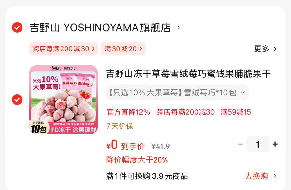 吉野山冻干草莓雪绒莓巧蜜饯果脯脆果干酸甜酥脆涂层锁鲜独立包装