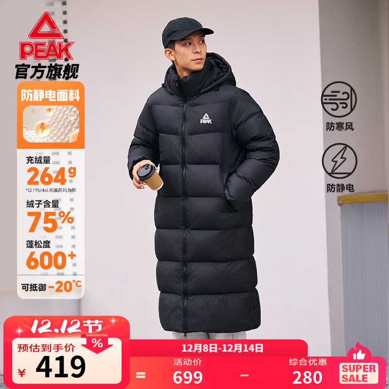 匹克 冬季连帽长款羽绒服外套
