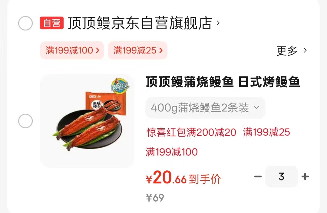 顶顶鳗蒲烧鳗鱼 日式烤鳗鱼400g/袋 2条整条装,拍3件【62】