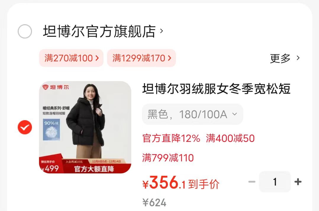 坦博尔 羽绒服女冬季宽松短款加厚保暖连帽,凑后【356】