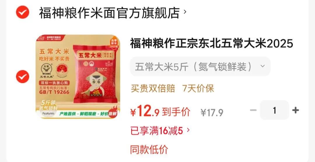 12.9元 当季新米! 福神粮作 东北五常一级大米 5斤 五常标准GB/T19266 米香浓郁~ 好单发报员 2025年12月08日 18:44 0 举报 12.9元 当季新米!福神粮作 东北五常一级大米 5斤https://u.jd.com/ZO6iCHa 五常标准GB/T19266 米香浓郁~ 复制文案