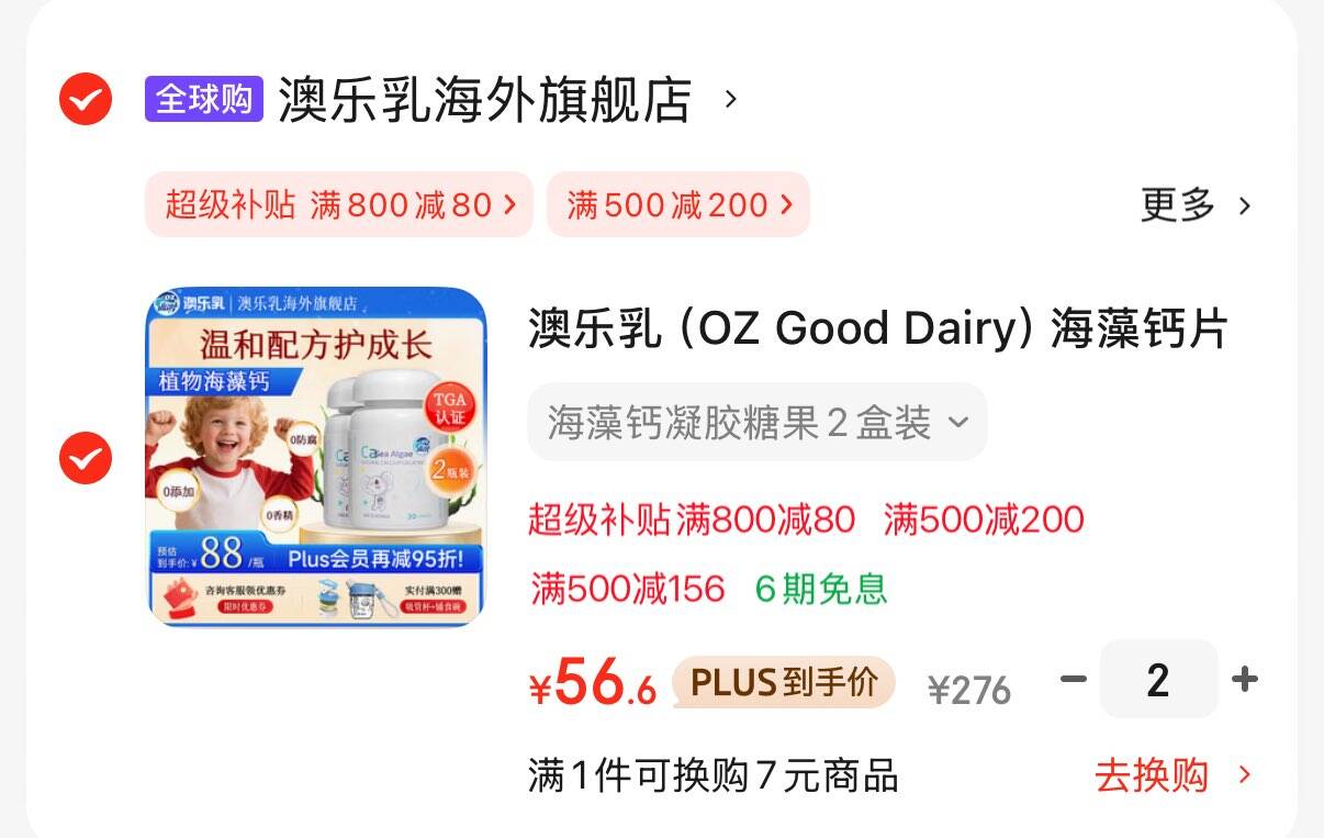 澳乐如宝宝海藻钙30粒*2瓶