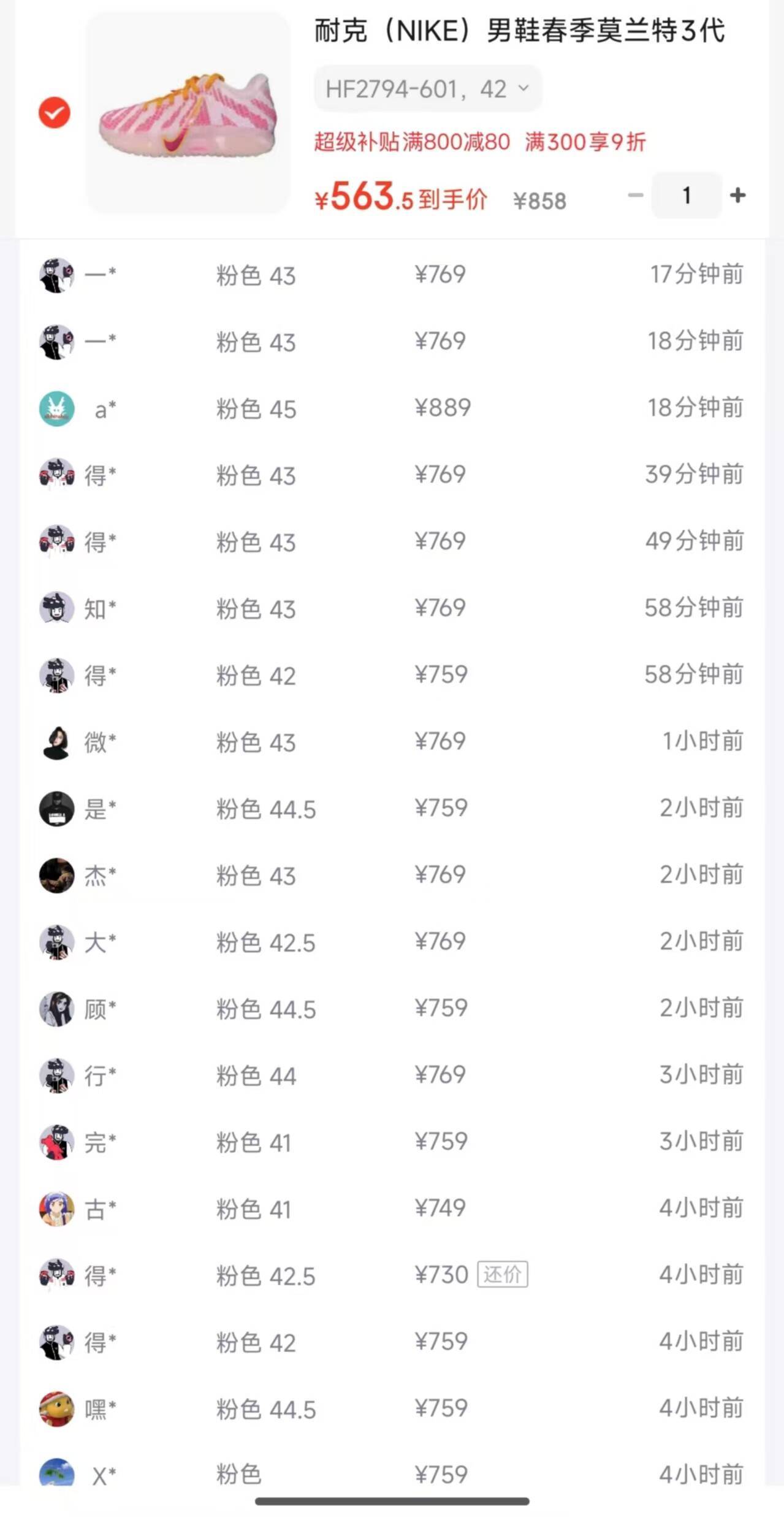 耐克莫兰特3代粉色 货号HF2794-601 到手643 锝.物769秒荬 好单发报员 2025年12月08日 20:06 0 举报 耐克莫兰特3代粉色 货号HF2794-601到手643 锝.物769秒荬https://u.jd.com/ZO6TS9A 用800-80卷到手563 复制文案