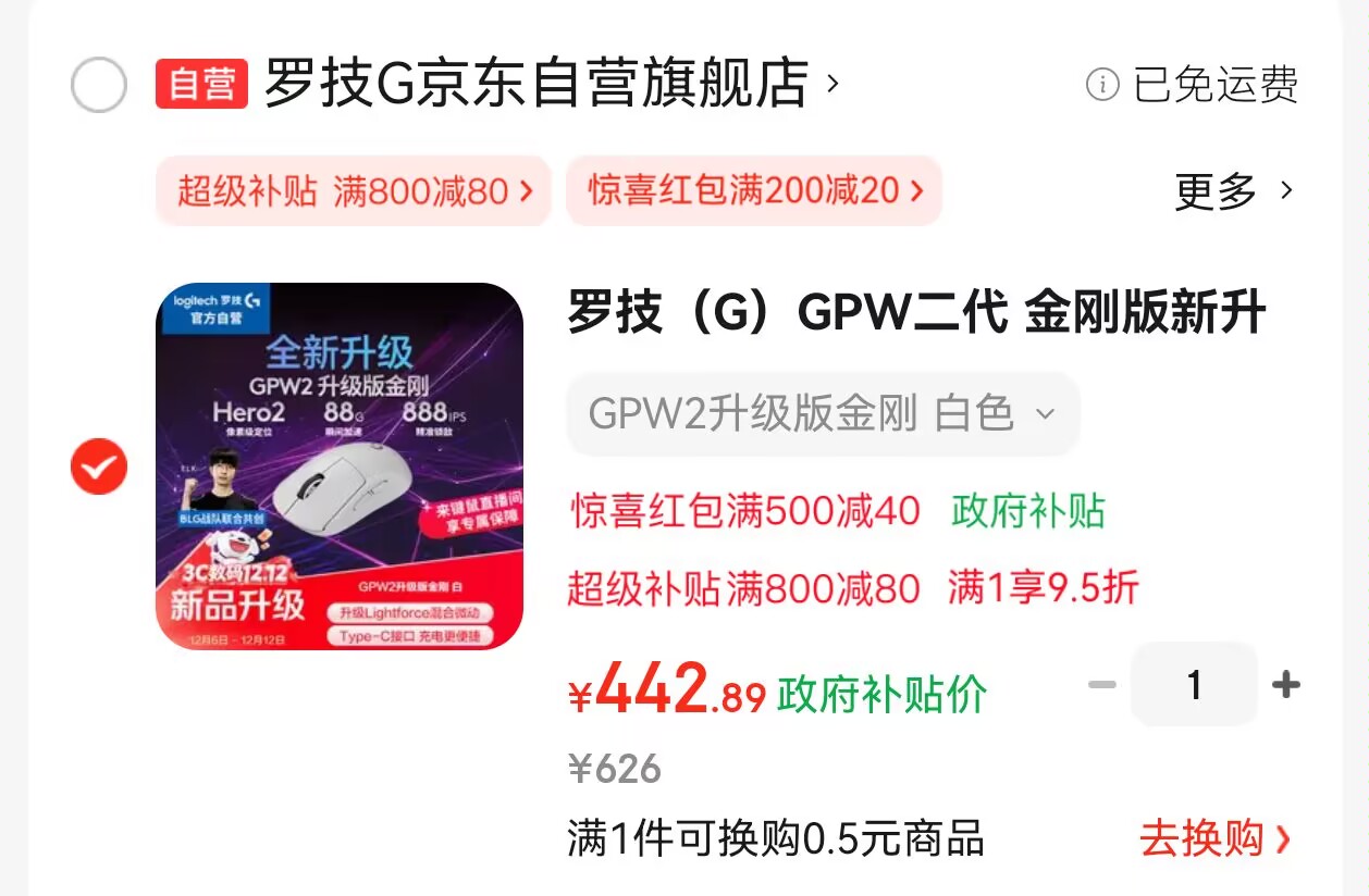 罗技gpw2金刚版 黑色白色【442】
