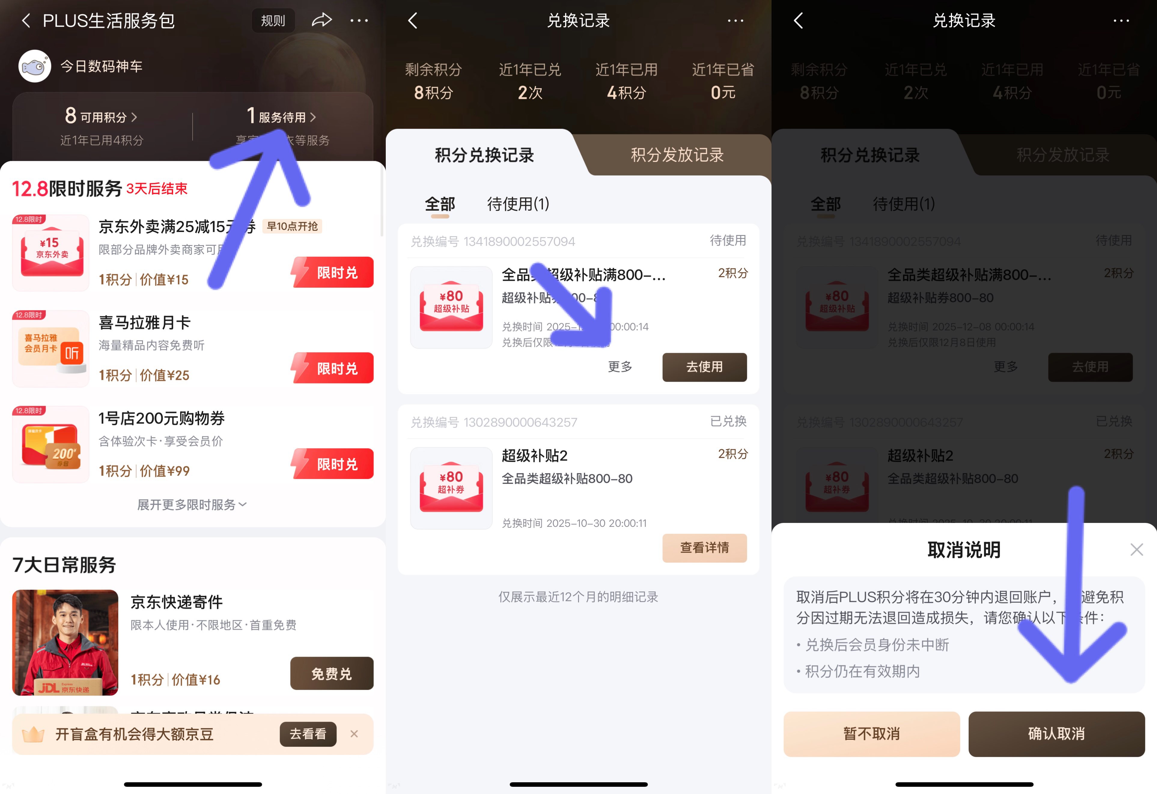 Plus兑换的积分券凌晨2点过期! 实在没啥想买的如图操作退回即可 如图,2点前取消兑换即可退回积分 好单发报员 2025年12月09日 01:15 0 举报 Plus兑换的积分券凌晨2点过期!实在没啥想买的如图操作退回即可https://u.jd.com/ZDOnPrG(如图,2点前取消兑换即可退回积分) 复制文案