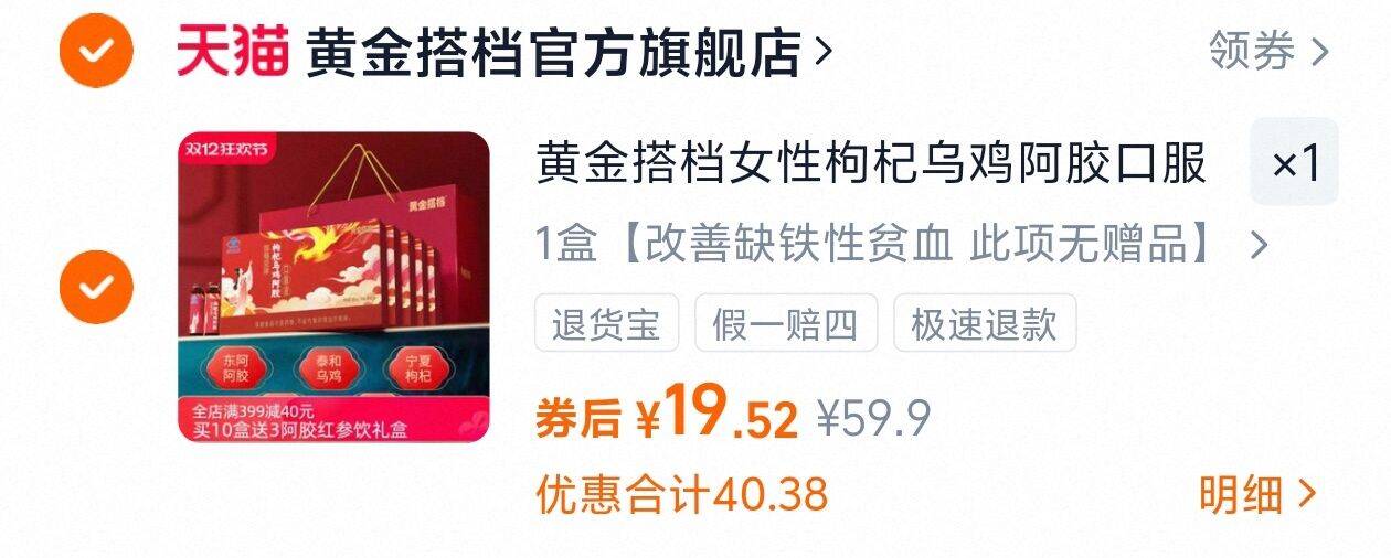19.9亓 黄金搭档官旗 黄金搭档枸杞乌鸡阿胶口服液 改善缺铁性贫血蹲蹲女孩福音 好单发报员 2025年12月10日 15:24 0 举报 19.9亓【黄金搭档官旗】黄金搭档枸杞乌鸡阿胶口服液https://m.tb.cn/h.7YTy9IC改善缺铁性贫血蹲蹲女孩福音 复制文案