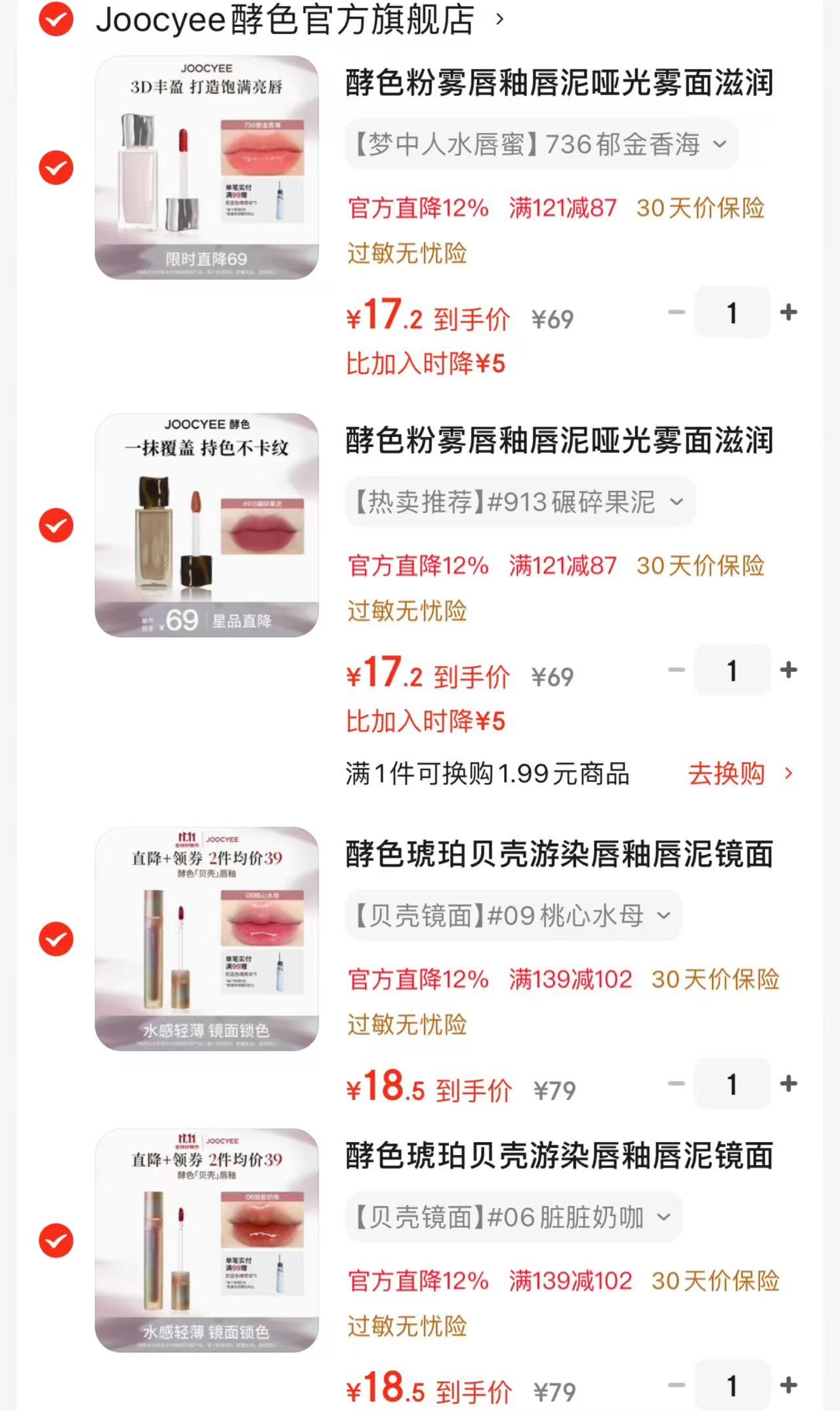 酵色 琥珀贝壳游染唇釉唇泥,任选2件【37】