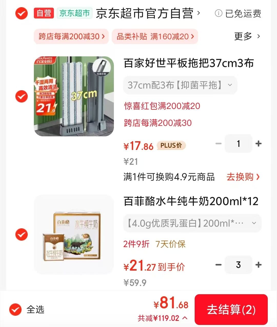 【自营】百菲酪 水牛纯牛奶 200ml*12盒