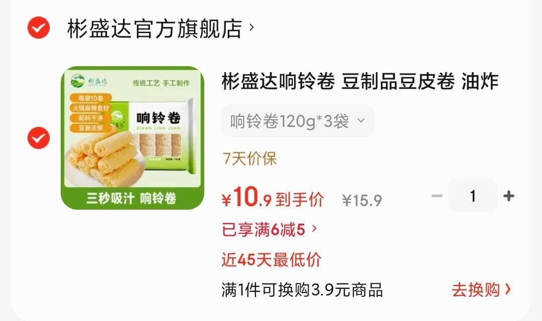 10.9元秒!才3.6元/大袋! 彬盛达 火锅食材 响铃卷120g*3袋 吃火锅 螺蛳粉搭配都好吃!好单发报员2025年12月13日 14:550举报 10.9元秒!才3.6元/大袋!彬盛达 火锅食材 响铃卷120g*3袋https://u.jd.com/Z1W64dM 吃火锅 螺蛳粉搭配都好吃!复制文案