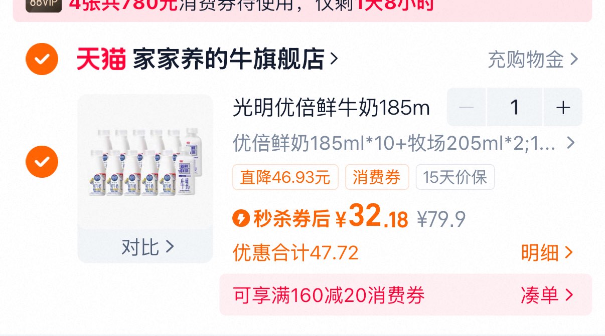 32亓过淘金币下拉秒杀 光明优倍鲜牛奶12瓶组合 185ml*10牧场205*2瓶 好单发报员 2025年12月13日 15:47 0 举报 32亓过淘金币下拉秒杀光明优倍鲜牛奶12瓶组合185ml*10牧场205*2瓶/ CZ1473 9yuLfG7Mh0b/ 复制文案