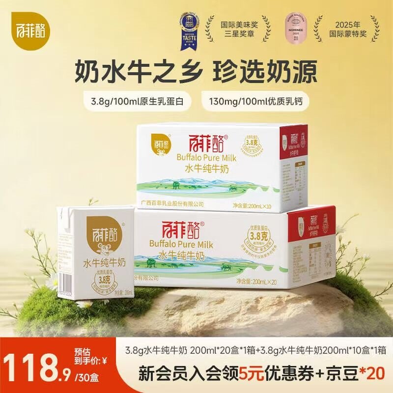 百菲酪 水牛纯奶200ml*30盒