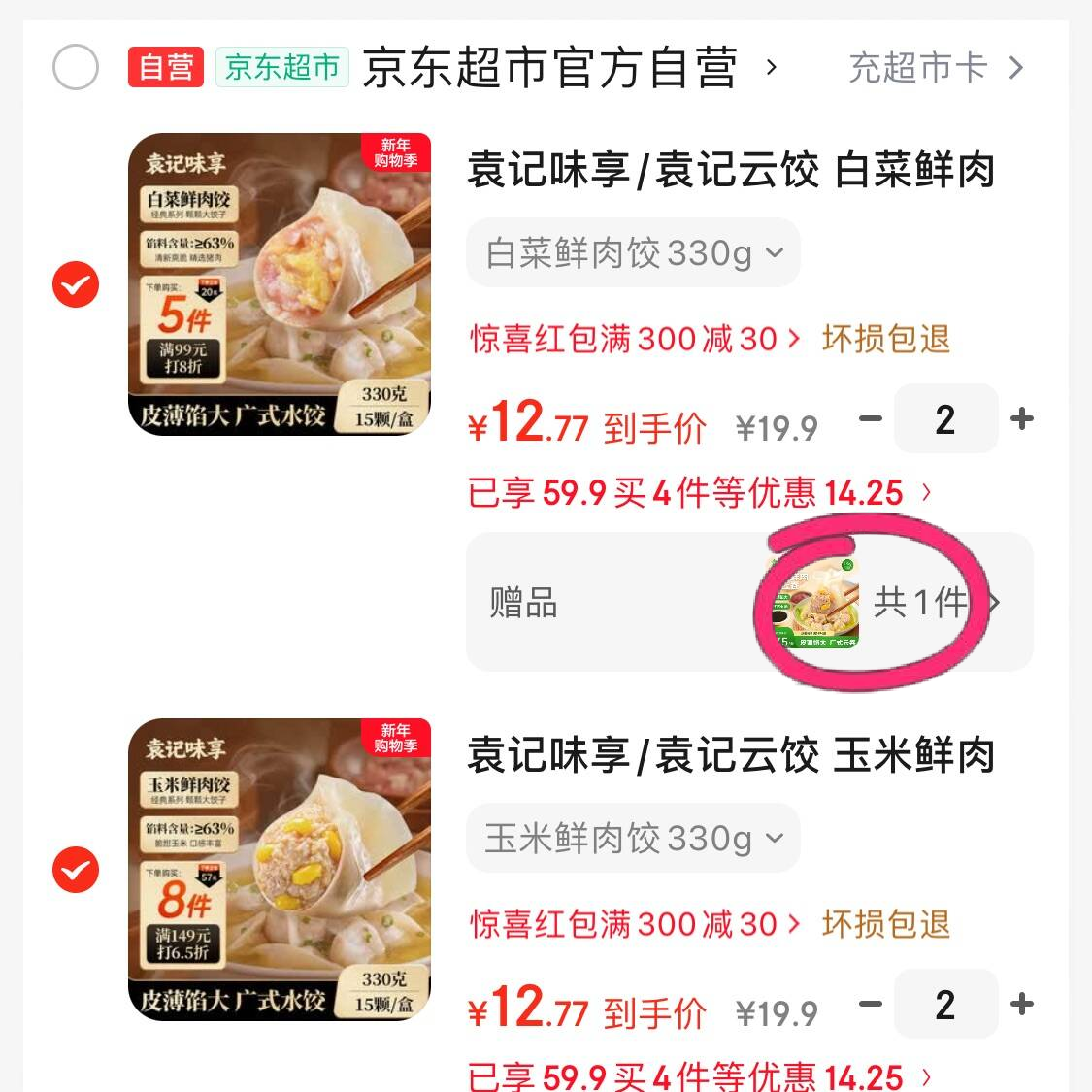 赠玉米鲜肉大云吞250g/盒