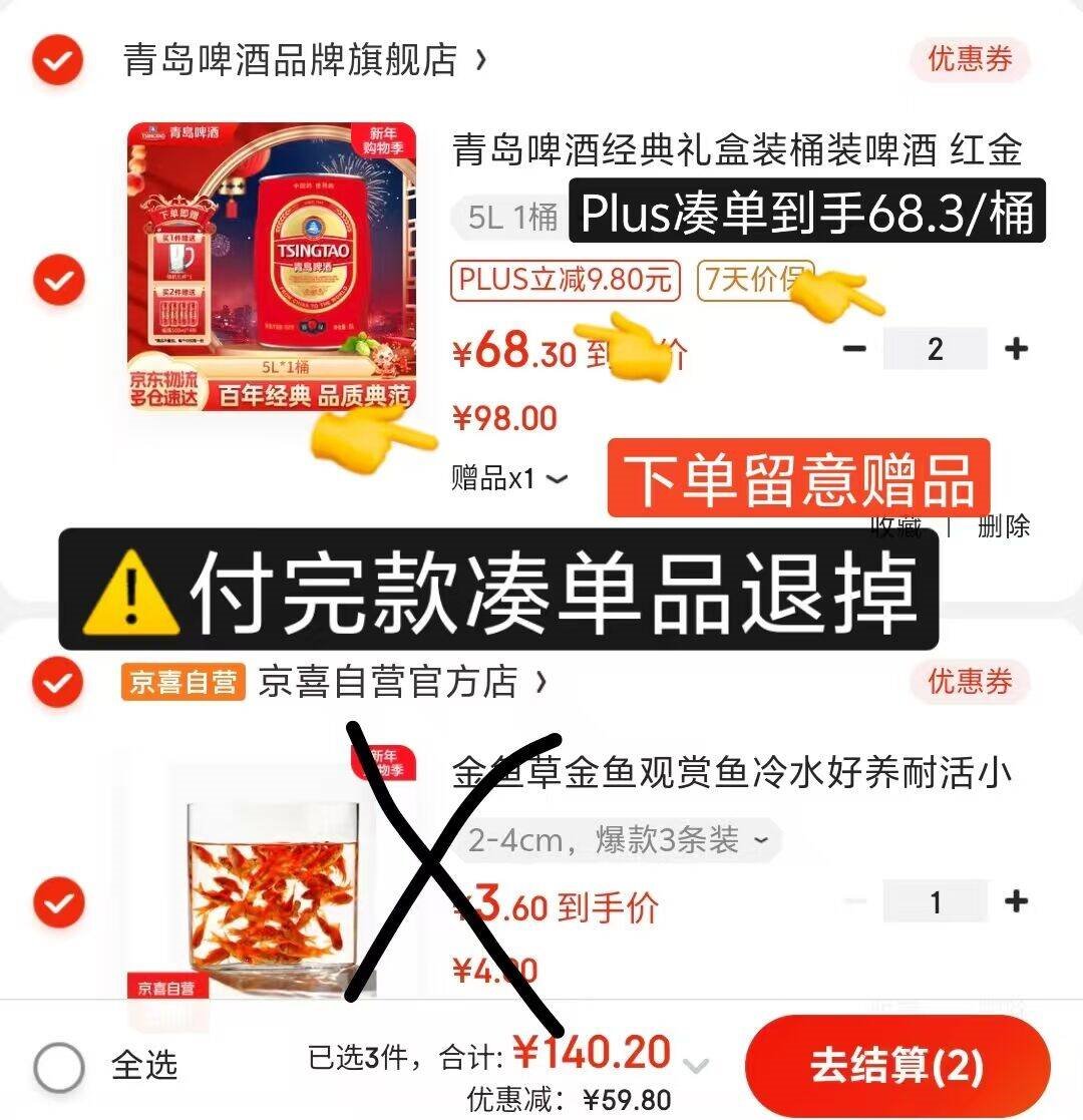 *折5L青岛啤酒到手60.8亓/桶